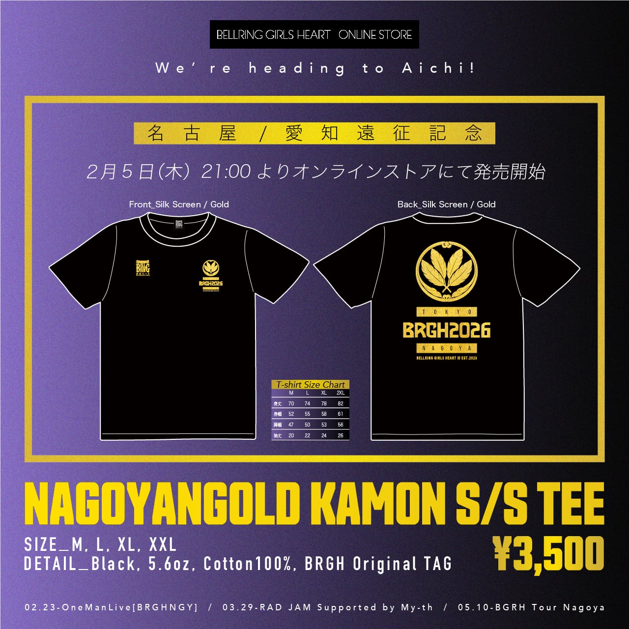 ●2/21名古屋ワンマン、3/29愛知遠征、5/10ツアー名古屋公演を記念した新作Tシャツです。